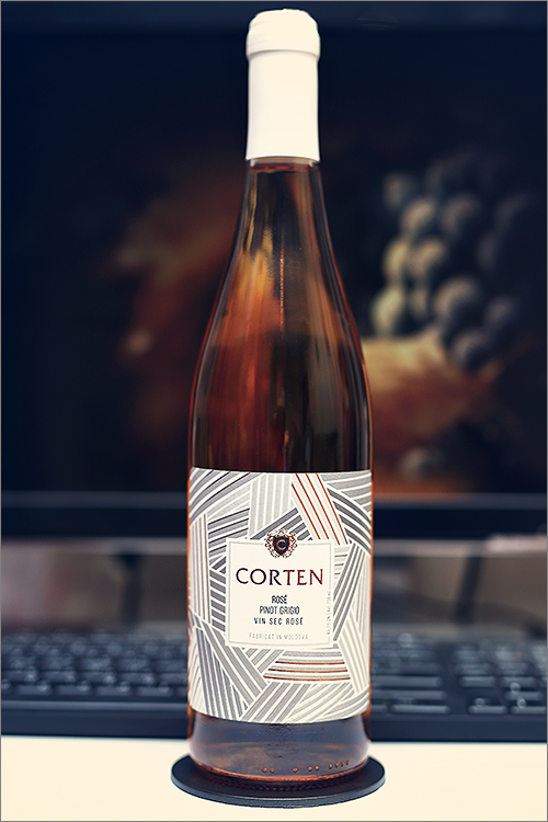 Tonight we are going to review a rosé wine, but not the regular one, as tonight we are going to review a pinot gris rosé wine – Pinot Grigio Rosé from Corten. This is a non-vintage rosé wine, made in a so called “vin gris” method, which means ‘grey wine’ and is when grapes are used to make a nearly-white wine. This method of making rosé wines is popular in the Provence region of France and is used mostly for light red grape varieties such as pinot noir or the white grape varieties with pink skin color, such as pinot gris or gewurztraminer. But enough theory, let’s move on to the tasting.