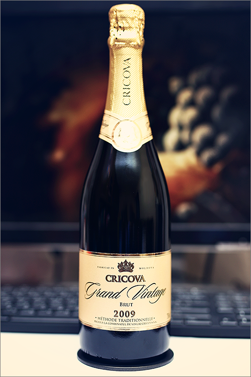 Tonight we present you one of the best crémant wines made in Moldova – Grand Vintage Brut 2009 from Cricova. It is made in a classic ‘méthode traditionelle’ or ‘méthode champenoise’ style, using only the pinot noir variety from the three main grape varieties allowed in the Champagne region, with second fermentation in the bottle, thus the wine was aged on lees for 5 years to add flavour, texture and complexity. But enough theory, let’s get straight to the review and see how good this wine is.