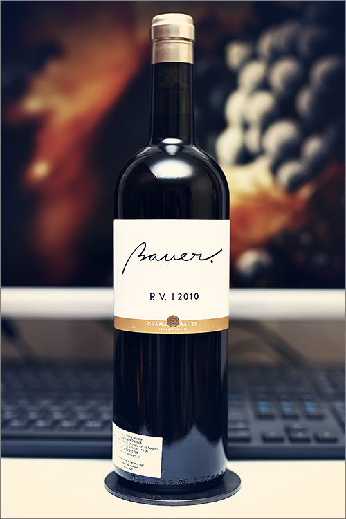 Tonight we are going to review a wine that is both, rare and unique, a wine we were so eager to try for such a long time, but we’ve been patiently waiting for the right time – P.V. 2010 from Crama Bauer. This is a single varietal petit verdot wine – a very old and rare Bordeaux variety, which is rarely produced as a single-varietal wine. Petit verdot was traditionally reserved as a minor blending grape in the world famous Bordeaux wine blend, however, lately winemakers have realized that it can make intensely fruity-yet-floral wines with unmatchable levels of tannins, but enough theory, let’s get straight to the tasting and find out just how good this wine really is.