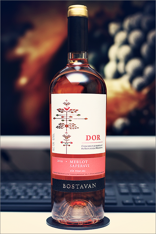 The wine we are going to review tonight is neither new nor old, as it was released on the market last summer, yet it is still relatively unnoticed by the wine lovers – Dor Merlot – Saperavi 2016 from Bostavan. It is a rosé wine blend, made of 2 varieties: merlot, which adds body and structure and saperavi, which is responsible for extra flavours and color. This wine is part of the Dor wine series that consists mainly of fresh, lean and quite appealing wines, that can be easily understood without too much fuss, wines that represent the rustic part of the region. That said, let’s find out just how good this wine is.