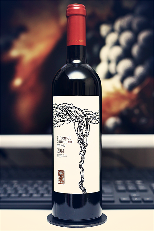 Today we are going to review another cabernet sauvignon wine – Cabernet Sauvignon 2014 from Vinaria Nobila. Cabernet sauvignon is a late ripening variety, the progeny of cabernet franc and sauvignon blanc, the world’s most famous red wine grape and the most planted one of any colour, that is grown all over the world in a wide range of climates, yet it does particularly well in the warmer regions. One can find many good to very good cabernet sauvignon wines almost in every wine-producing country and Moldova is no exception. This is one of the flagship wines from Vinaria Nobila and it has been aged for 24 months in new oak barrels, which is quite a lot, but let’s not put too much emphasis into the theory, let’s move on with the tasting and find out just how good this wine really is!