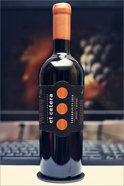 Tonight we are going to review a quite rare wine blend, as it is made of cabernet sauvignon and feteasca neagra grape varieties, where the first one forms the main body and structure, while the last one is the key of the whole blend, as it is meant to add those velvety-leathery notes to the final blend, which are so much sought after by the consumer. The wine we’ve selected for the review tonight is Serendipity 2014 from Et Cetera, which is a wine from the flagship line of Et Cetera premium wines. It has been aged for 18 months in new oak barrels and is produced in a quite limited edition of only 3977 bottles, but enough theory, let’s get straight to the tasting!
