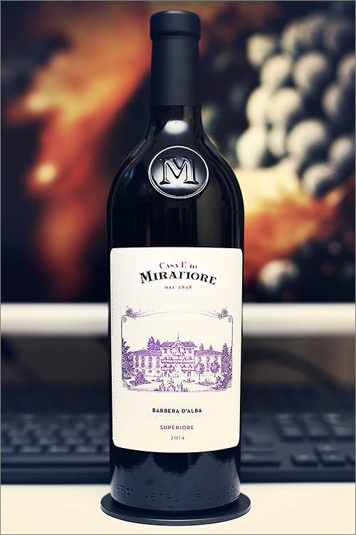 Tonight we are going to review a wine that is considered a pioneer of his generation, un italiano vero from Piedmont – Barbera D’Alba Superiore 2014 by Casa E. di Mirafiore. This wine has antique and royal origins, as it is related to Emanuele Alberto, Count of Mirafiore, the legitimate son of King Vittorio Emanuele II and Rosa Vercellana. The Count of Mirafiore was the first to have the idea of transforming his farm into a winemaking house, the result was a line of extremely high quality wines that were inspired by the great tradition of Piedmonte. The wine we are reviewing tonight is a single varietal barbera wine, that expresses the fusion of tradition with modern winemaking. But let’s not put too much emphasis on the theory – on to the tasting!