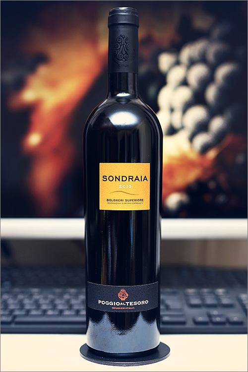 Tonight we are going to review yet another Super Tuscan wine – Sondraia Bolgheri Superiore 2013 by Poggio al Tesoro. Bolgheri wine region is nothing less than a dream come true – producing wines that capture the imagination in the heart of Tuscany, where Poggio al Tesoro is one of the most exciting estates that have emerged from Italy in recent years. Their flagship wine being Sondraia – a blend of cabernet sauvignon, merlot and cabernet franc, aged for 18 months in french oak barrels, followed by 9 months of bottle maturation. This wine is a fine example of how a textbook Bordeaux blend can be masterfully crafted from Bolgheri’s terroir. Perfectly ripe grapes and painstaking work in the cellar yield a great wine, that maintains both, harmony and finesse – a style that makes Sondraia a real classic. But enough theory – on to the tasting!