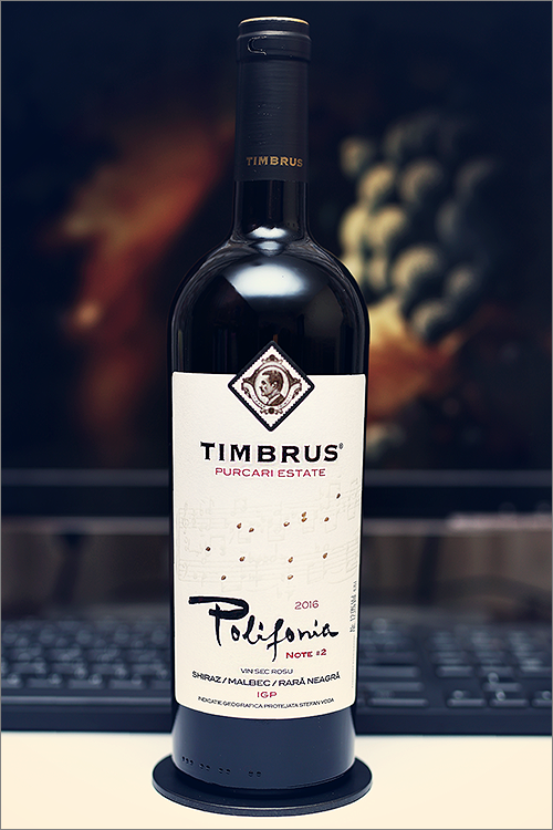 Tonight we are going to review a red wine blend from the protected geographical region of Stefan-Voda – Polifonia Note #2 2016 by Timbrus. The wine has been released on the market a couple of seasons ago, yet it is still relatively unnoticed by the wine lovers. This is a blend of syrah, malbec and rara neagra grape varieties and is part of the ‘Polifonia’ wine series, that is a series made of three wines, each one with its own character and individuality, which resembles musical polyphony by combining traditions with freedom of thought. The wine is signed by none other than spanish winemaker Manuel Ortiz. But enough with all this theory – without further ado, let’s get straight to the tasting!
