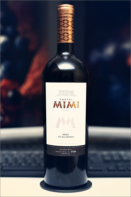 Tonight we are going to review another wine blend that is made of three major french grape varieties: cabernet sauvignon, which form the main body and structure, merlot, which rounds up the blend, and malbec, responsible for extra color and fruit extract – Rosu de Bulboaca 2015 by Castel Mimí. This is a quite famous local wine and its blending formula is slightly adjusted as compared to its predecessor, Rosu de Bulboaca 2014, and as is the norm for those kind of wines, it has been aged for 12 months in oak barrels. But let’s get rid of all that theory and, without further ado, move on, straight to the tasting!