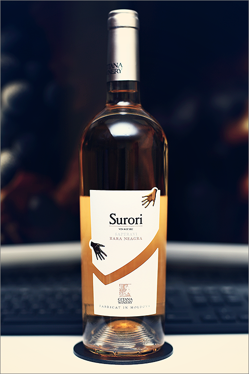 The wine we are going to review tonight is quite special – Surori 2018 by Gitana Winery. This is a rosé blend made of saperavi and rara neagra grape varieties, which are two of the most seldom used varieties in a rosé wine. The wine is named after the two sisters, Liliana and Iuliana Dulgher, also pointing at the two varieties picked for the blend – one flamboyant and expressive and the other delicate and subtle. With grapes harvested by hand in the Valul lui Traian region, and with 25 days of ageing on fine lees, this wine is meant to capture the character of its area of origin. But enough theory – on to the tasting!