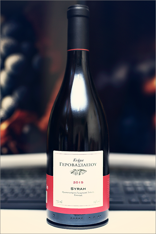 Tonight we are going to review a gorgeous single varietal syrah wine from the Epanomi region of northern Greece – Syrah 2015 by Ktima Gerovassiliou. In a world where bolder is better, syrah is the perfect choice, as it is darker and spicier than cabernet sauvignon and contains a high amounts of health-invigorating antioxidants. This syrah has been produced with grapes from the oldest vines on the estate, with extended maceration and barrel ageing in french oak barrels. Syrah, also known as ‘Shiraz’, can be vinified in two major styles: old-world style and new-world style. The old-world syrah wines tend to have more acidity and earthy-herbaceous aromas, while the new-world shiraz wines are usually fruit-driven with lots of spice. But enough with all that theory – without further ado, let’s move on, straight to the tasting and find out how good this wine really is!