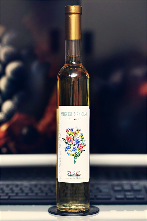 Tonight we are going to review an unique wine with the label Made in Moldova – Mierea Ursului Ice Wine 2017 by Etnovin. This wine is unique because this is the only local wine made from frozen feteasca regala grapes. Ice wines are in fact a subtype of dessert wines and are one of the treasures of the wine world – made from grapes that are left on the vines to freeze deep into the winter, thus the sugar content increases due to dehydration and frost. Technically, any grape variety can be used for the production of ice wines, yet there are some varieties that excel more than the others and feteasca regala might be one of them, mostly due to its expressive aromatics and high acidity. That said, let’s skip all that theory and, without further ado, let’s take a look at the wine tasting results!