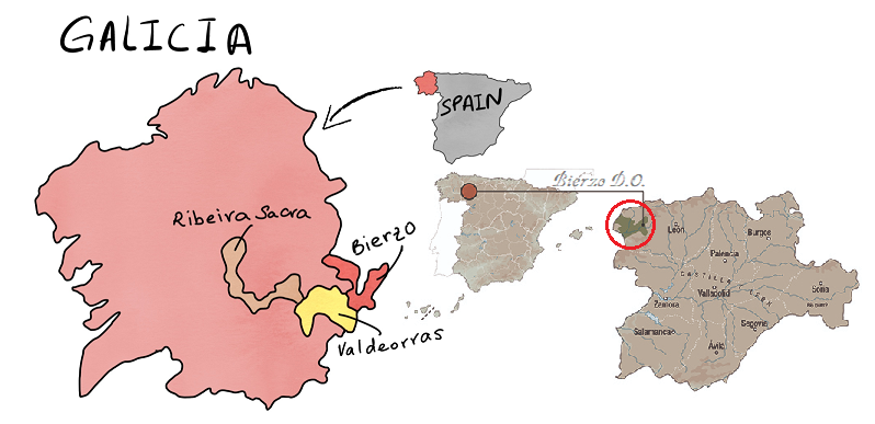 The region’s flagship grape is mencía – a red grape variety grown widely in north-western Spain, which makes quite perfumed and relatively light-bodied red wines. It contains high amounts of aroma compounds called terpenoids, which brings up lovely floral flavours and ripe, red fruits notes. In Bierzo, mencía expresses a unique stylistic duality: in warmer, slate-rich areas, it shows bold fruit and supple richness, while in cooler, clay-dominant parcels, it offers a more earthy, savory, and structured profile, often with vivid acidity and wild herb notes. The result is a highly terroir-driven wine culture, where site-specific bottlings, especially from old vines, emphasize elegance and authenticity. Bierzo also produces characterful godello white wines, known for their weight, minerality, and good aging potential.