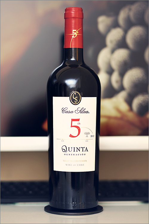 Tonight we are going to review a legendary wine from Chile‘s famous Colchagua Valley – 5th Quinta Generacion 2012 by Viña Casa Silva. Casa Silva was founded in 1997 when Mario Pablo Silva, the oldest son of the fifth generation (hence the name of the wine – Quinta Generacion, which translates as ‘the 5th generation’), and his father, Mario Silva, shared the dream of making wines under their own label. They have dedicated much of their time to recover the old family vineyards and acquired an extensive understanding of the terroir in the Colchagua Valley. This particular wine is a blend of 4 grape varieties: 50% cabernet sauvignon, 30% carmenère, 10% petit verdot and 10% syrah, that were sourced from the Los Lingues and Lolol vineyards. The wine has been aged for 12 months in 100% new french oak barrels and another 12 months in the bottle, before being released on the market. That said and without further ado, let’s take a look at the wine tasting results.