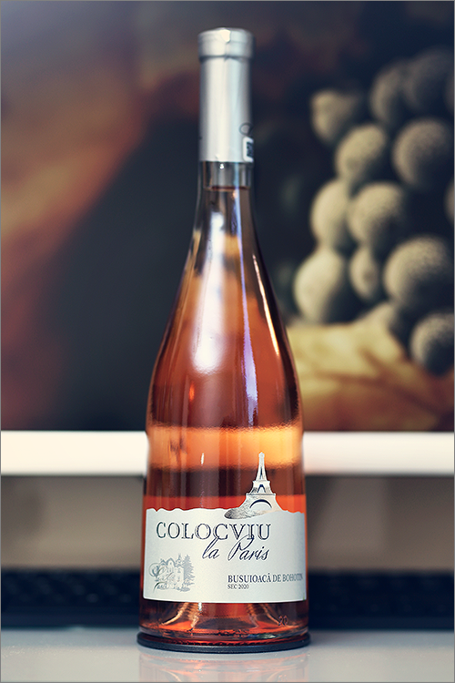 Today we are going to review a rosé wine from eastern Romania, to be more precise from the Cotnari vineyards in Moldova – Colocviu la Paris Busuioaca de Bohotin 2020 by Casa de Vinuri Cotnari. Rosé is a bizarre wine category, as it isn’t exactly a red wine nor is it a white wine – it is something in between. The secret to the pinkish hue of the rosé wine is found in the skins of the grapes and more exactly in the anthocyanin pigments. When making a red wine, the skins spend the entire fermentation touching the juice, for rosé however the process is shortened, for example pinot noir usually spends around 4 to 6 hours on the skins to produce its trademark pale salmon hue, while cabernet sauvignon needs only a few minutes to make that rich, deep-pink color. This particular rosé wine is made out of busuioaca de bohotin grapes – a romanian variety that originated in Bohotin, near Iasi, and which is very similar to tamaioasa romaneasca. The grapes are purple in color and the resulting wines have slightly purple hues, with nuanced rose petals flavour, strawberries and wildberries. That said, without further ado, let’s take a look at the wine tasting results.