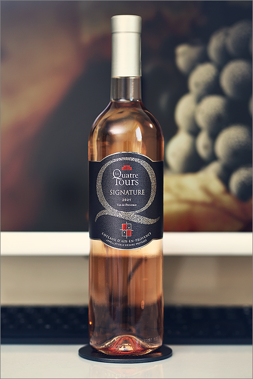 Today we are going to review a genuine rosé wine from the famous Provence region of southern France – Signature 2021 by Les Quatre Tours. This rosé wine is a traditional, multi-varietal blend made out of four red grape varieties (40% syrah, 30% grenache, 10% cinsault and 10% cabernet sauvignon) and one white grape variety (10% rolle, which is the french name of the famous vermentino grape variety that originates from Sardinia), with each variety vinified separately before blending them into the famous Signature cuvée. Rosé itself is a bizarre wine category, as it isn’t exactly a red wine nor is it a white wine – it is something in between. The secret to the pinkish hue of the rosé wine is found in the skins of the grapes and more exactly in the anthocyanin pigments. When making a red wine, the skins spend the entire fermentation touching the juice, for rosé however the process is shortened, for example pinot noir usually spends around 4 to 6 hours on the skins to produce its trademark pale salmon hue, while cabernet sauvignon needs only a few minutes to make that rich, deep-pink color. Les Quatre Tours is situated in the heart of Provence surrounded by olive trees and pinewoods, at the foot of the beautiful Mont Saint Victoire, therefore it falls under the Coteaux d’Aix-en-Provence AOP. That said, without further ado, let’s take a look at the wine tasting results.