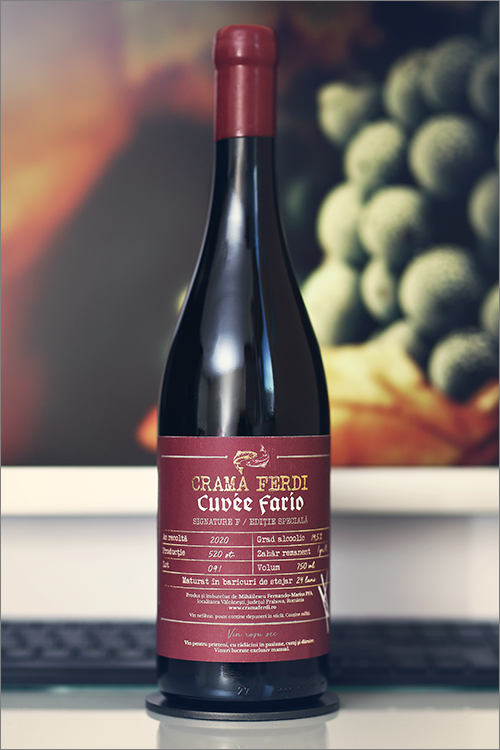 Today we are going to review a very rare wine blend from the famous Dealu Mare region of Romania – Cuvée Fario Signature F 2020 by Crama Ferdi. This wine represents the quintessence of Ferdi Wines – a harmonious blend of three grape varieties: syrah, cabernet franc and merlot, where syrah forms the wine’s main body and structure, delivering those famous, spicy-dusty notes to the aromatic profile, cabernet franc adds up-front richness and offers a leaner and a more dynamic finish, while merlot builds a more refined mid-palate and enhances the wine’s color depth. This wine is a classic example of modern microvinification, aged for 24 months in new oak and another 24 months in the bottle, it is produced in a very limited edition of only 520 bottles, each of which is signed personally by the winemaker, Fernando Marius Mihailescu, thus this wine is a rarity even in Romania. That said and without further ado, let’s take a look at the wine tasting results.