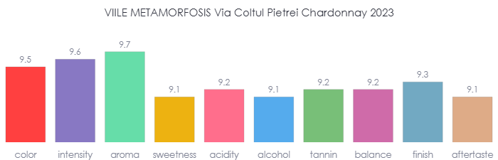 Today we are going to review single varietal chardonnay wine from the famous Dealu Mare region of Romania – Via Coltul Pietrei Chardonnay 2023 by Vitis Metamorfosis. Chardonnay is one of the world’s most popular grape varieties, regarded by many as the ‘Queen of Whites‘ and it is prized for its flexibility and for the ability to produce top-notch wines in a wide range of climates and terroirs. Stylistically, there are two main types of chardonnay wines: on one hand we have the classic, creamy and rich, oak-aged style, that is backed up by winemakers in Napa Valley and most of the Grand Cru in Bourgogne, whereas on the other hand there’s the crisp, zingy and citrusy, unoaked style, that is mainly promoted by the new-world producers and most of the winemakers in the Chablis region.