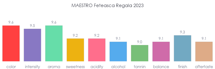 Today we are going to review a single-varietal feteasca regala wine from the Stefan Voda area, which is the most famous wine region of Moldova – Feteasca Regala 2023 by Maestro Wines. Feteasca Regala (which translates from romanian as ‘royal maiden‘) is one of the most famous and sought after white grape varieties in Romania, also enjoying significant popularity in Moldova and Hungary (where it is known as királyleányka, which translates as ‘little royal girl’ or ‘princess’). Feteasca Regala has been discovered near the medieval town of Sighisoara (Transylvania) in 1920 – a natural cross between feteasca alba and grasa de cotnari grape varieties. It usually produces crisp, dry and very aromatic white wines, perfect for a warm summer day, but when handled with utmost care by a skillful winemaker, feteasca regala can result in refreshingly elegant wines that can reach into realms of excellence. The winemaking involves a quite interesting technique: fermentation in oak barrels to enhance texture and complexity, followed by ageing exclusively in stainless steel tanks. This method, complemented by several months of bottle ageing, is designed to preserve the grape’s intrinsic varietal characteristics, particularly its delicate aromatics and zesty acidity, resulting in a wine that is both rich and refreshingly pure.
