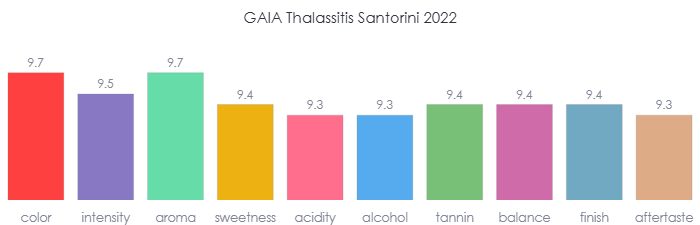 Today we are going to review a wine that is a pure and unadulterated reflection of its iconic terroir – a single-varietal assyrtiko wine from Santorini – Thalassitis Santorini 2022 by Gaia Wines. Assyrtiko is an indigenous grape variety of Greece, valued for its remarkable ability to express terroir and retain vibrant acidity even under the scorching Mediterranean sun. Originating from the volcanic soils of Santorini, Assyrtiko produces white wines of striking minerality and depth, often compared to Riesling due to its structure and complexity. Traditionally trained in the unique kouloura basket shape to protect the vines from fierce winds and heat, Assyrtiko has lately spread across mainland Greece – from Macedonia to the Peloponnese, as well as other Aegean Islands. Today’s wine was crafted from grapes that were sourced from ancient, self-rooted vineyards of Episkopi, Akrotiri, and Pyrgos – three of the Santorini‘s premier terroirs that are nearly 80 years old. The wine is vinified and aged entirely in stainless steel vats in order to preserve the Assyrtiko‘s pure varietal character and the delicate, saline minerality imparted by the Santorin‘s volcanic terroir, without any influence from oak.
