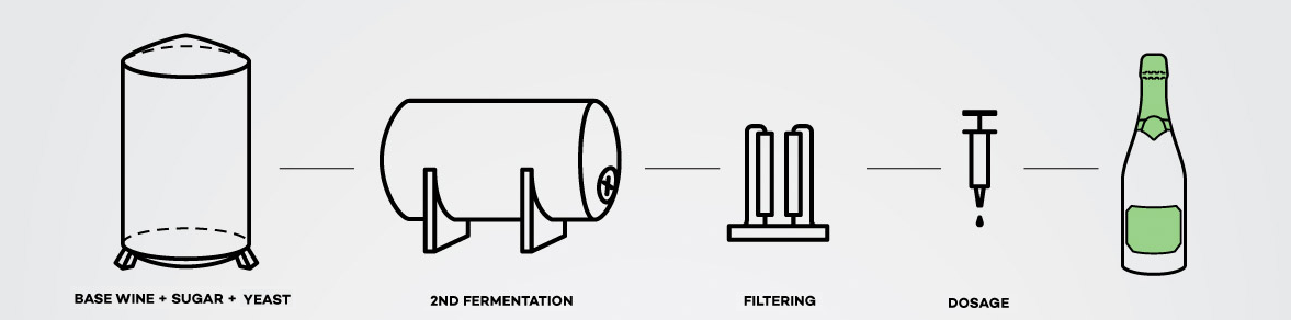 When it comes to sparkling wines, not all of them are created the same way. One of the key differences lies in how the bubbles are formed — specifically, whether the wine undergoes its second fermentation in the bottle (traditional method) or in large pressurized tanks (tank method, also known as charmat method). In the tank method the secondary fermentation happens in stainless steel tanks rather than individual bottles. This process is quicker, more cost-effective, and preserves the wine’s vibrant fruit character and freshness. The result is a more aromatic, easy-drinking sparkling wine with crisp acidity and minimal yeasty complexity (think of Prosecco). On the other hand, the traditional method is a more time-intensive process, as the second fermentation happens in the bottle, where the wine also ages on the fine lees (the dead yeast particles) for extended periods, from several months to several years. This slow aging builds extra layers of complexity on the nose and creates a creamy textures on the palate (think of classic sparkling wines like Champagne, Cava, or Franciacorta).