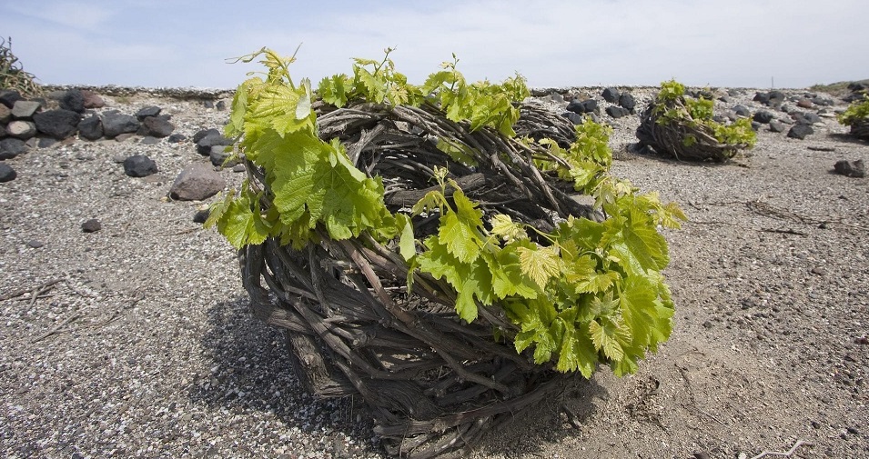 Rising from the remnants of an ancient volcano, the Santorini island stands as one of the world’s most distinctive winegrowing regions – a windswept, sun-drenched island where vines root in pure volcanic ash, pumice, and basalt. These mineral-rich and porous soils are almost devoid of clay and organic matter, providing natural immunity to phylloxera and forcing the vines to struggle for survival, yielding grapes of remarkable concentration and salinity. Santorini boasts a dry mediterranean climate with low rainfall and intense summer heat, which is tempered by cool sea breezes and the powerful Meltemi winds from the Aegean Sea, which moderates temperatures, prolongs ripening, and keeps vines free from disease.